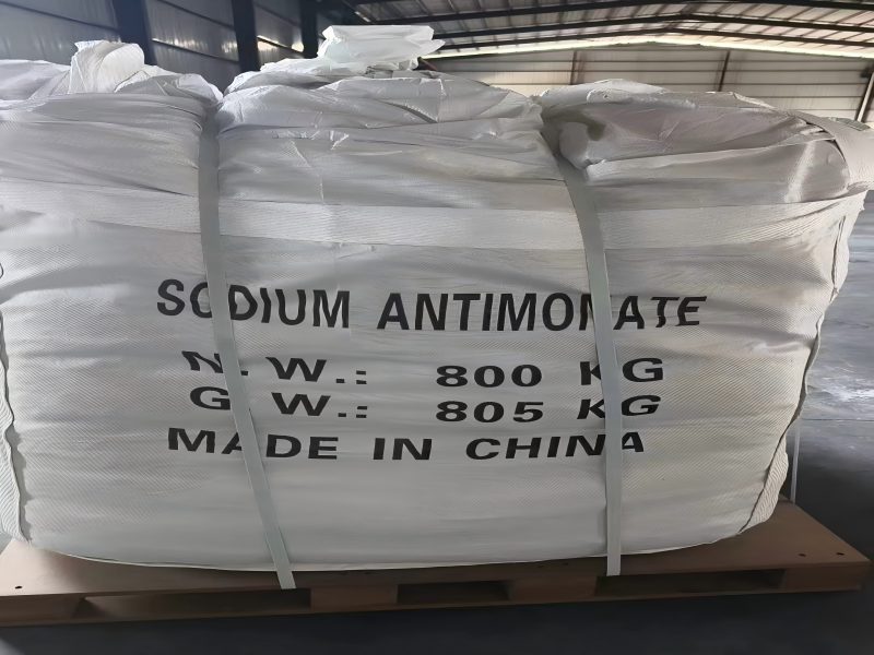 Ultrafeines 2–5 Mikron großes Natriummetaantimonat ist das beste Verschleißschutz- und Flammschutzmittel und hat eine gute Wirkung bei der Verbesserung der Leitfähigkeit. Es wird hauptsächlich bei der Herstellung von Kunststoffteilen wie Automobilen, Hochgeschwindigkeitsbahnen und der Luftfahrt sowie bei der Herstellung von Glasfasermaterialien, Gummiprodukten, Lackprodukten und Textilien verwendet. Es wird durch Zerschlagen von Antimonblöcken, Mischen mit Natriumnitrat und Erhitzen, Durchleiten von Luft zur Reaktion und anschließendes Auslaugen mit Salpetersäure gewonnen. Es kann auch durch Mischen von rohem Antimontrioxid mit Salzsäure, Chlorierung mit Chlor, Hydrolyse und Neutralisation mit überschüssigem Alkali gewonnen werden.